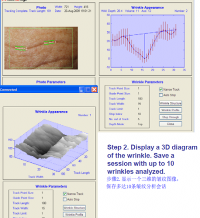 皺紋分析儀皺紋分析儀特點(diǎn):1)非接觸測(cè)量,皺紋不變形( 測(cè)試方法更科學(xué)...